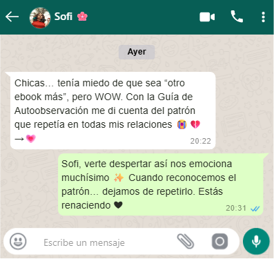 si después de avanzar con el ebook y los 5 bonos no sentís claridad, alivio emocional o un cambio interno real, simplemente escribinos y te devolvemos tu inversión.